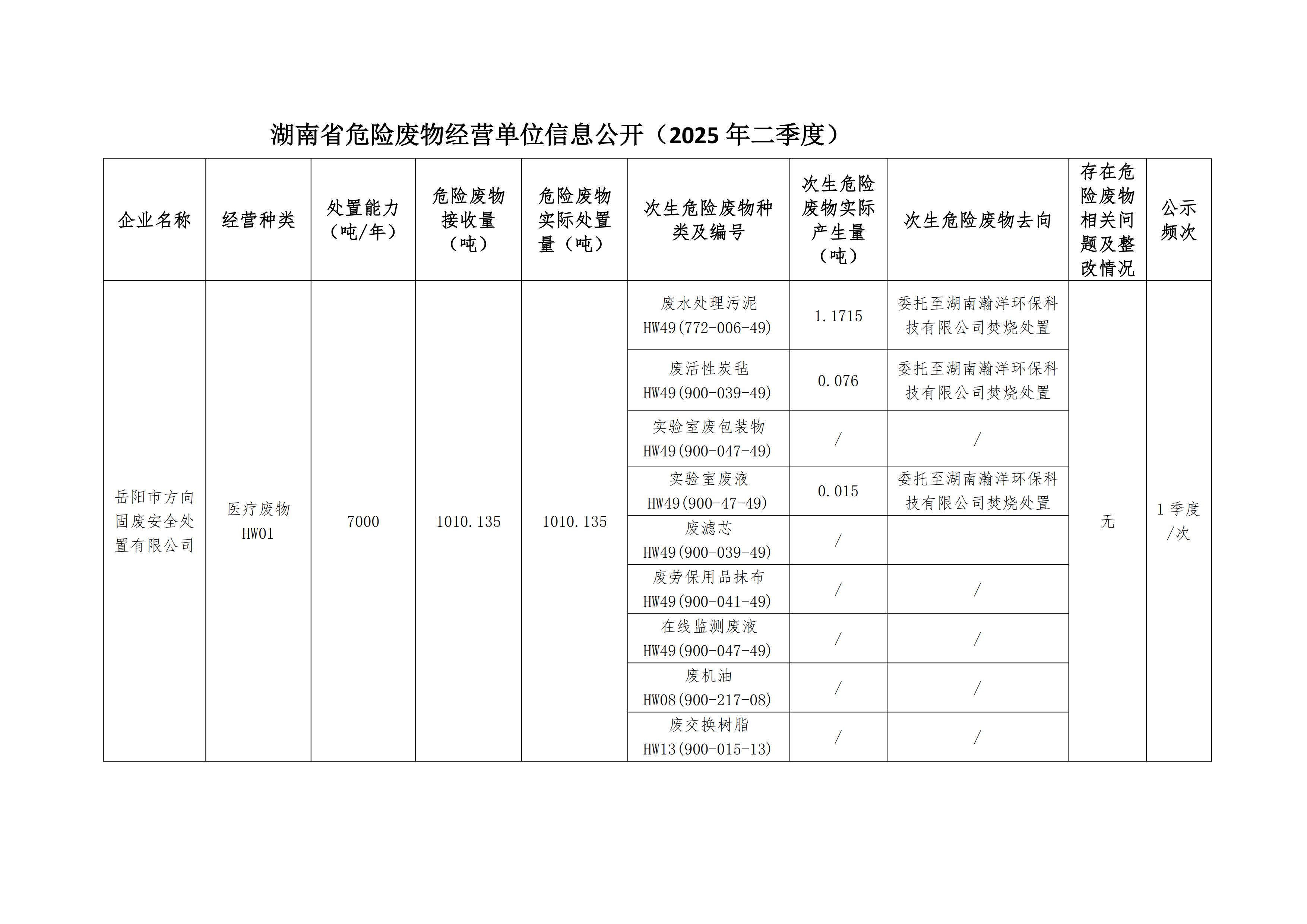 湖南省危險廢物經(jīng)營(yíng)單位信息公開(kāi)--岳陽(yáng)公司2025年第二季度